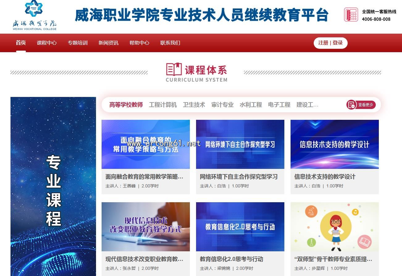威海职业学院专业技术人员继续教育专业课学习联系在线客服
