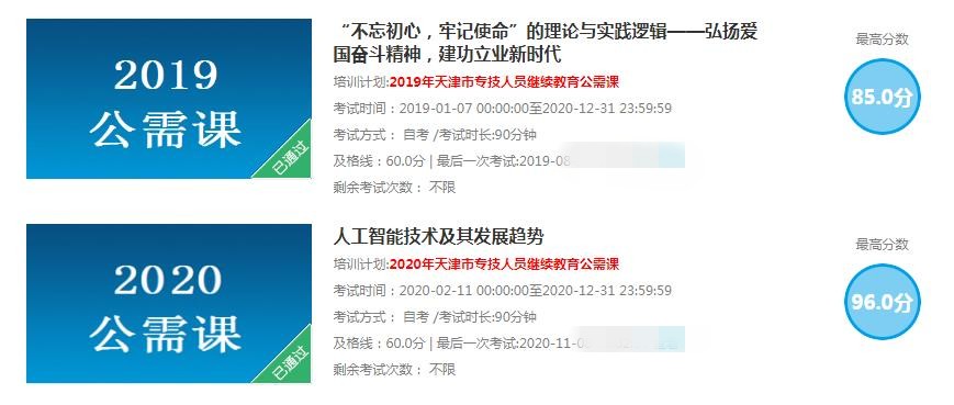 天津市专业技术人员继续教育网 2020年公需课学习 补学2016年至2019年公需科目