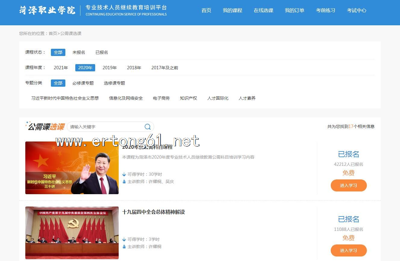 山东菏泽继续教育 公需课 专业课 学习联系在线客服