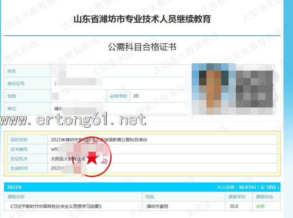山东潍坊市专业技术人员继续教育 公需课 专业课学习 太阳圣火教育