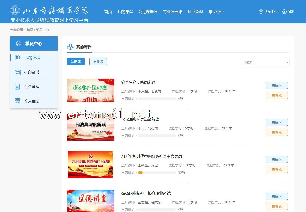 山东烟台专业技术人员继续教育公需课专业课 山东商务职业学院 可补学历年课程