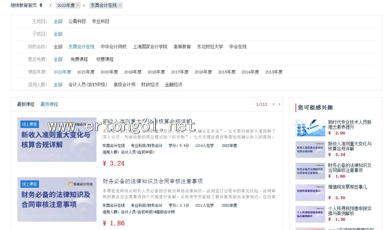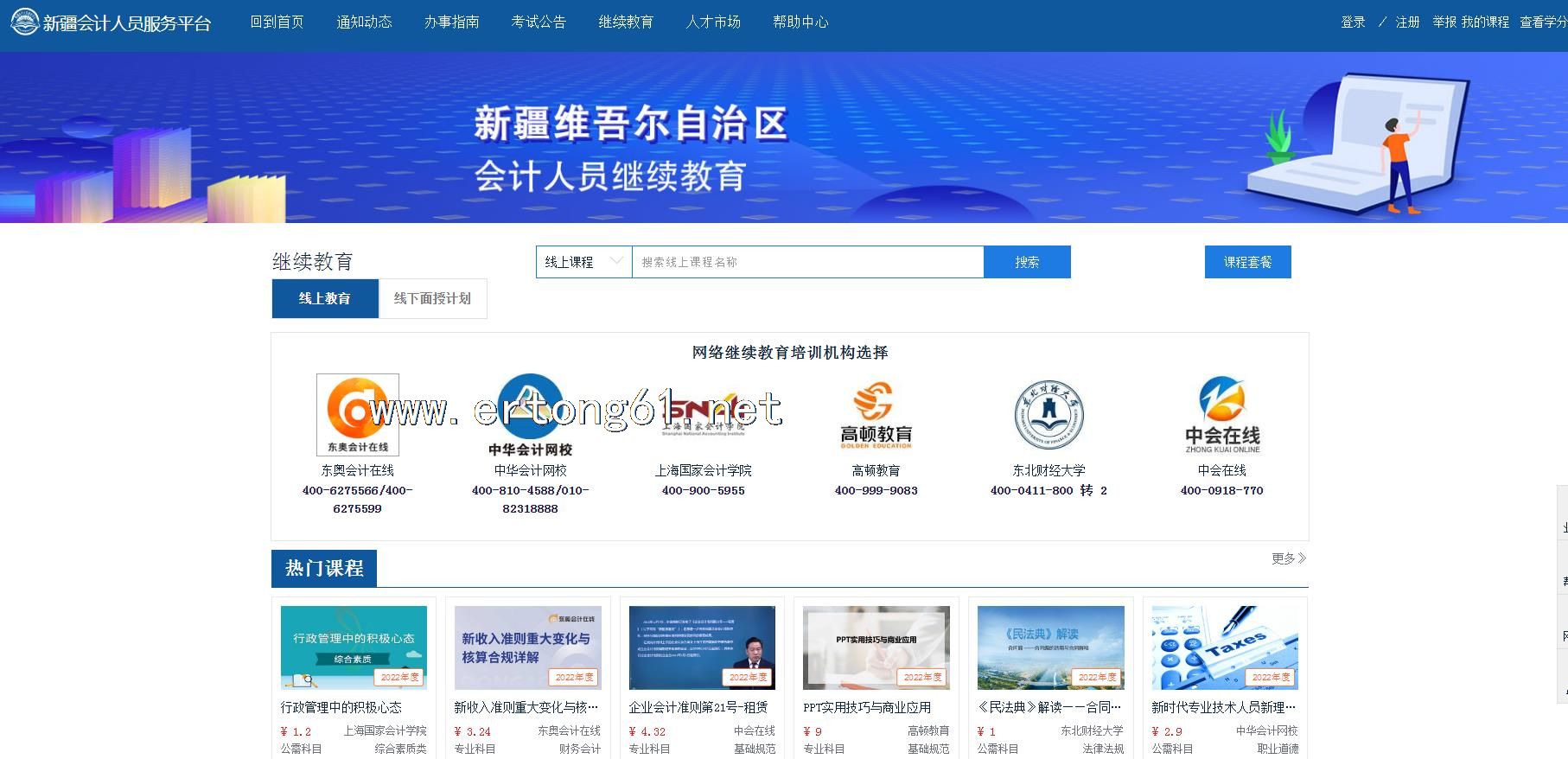 新疆会计人员服务平台 继续教育 东奥会计 中华会计 高顿教育 中会在线