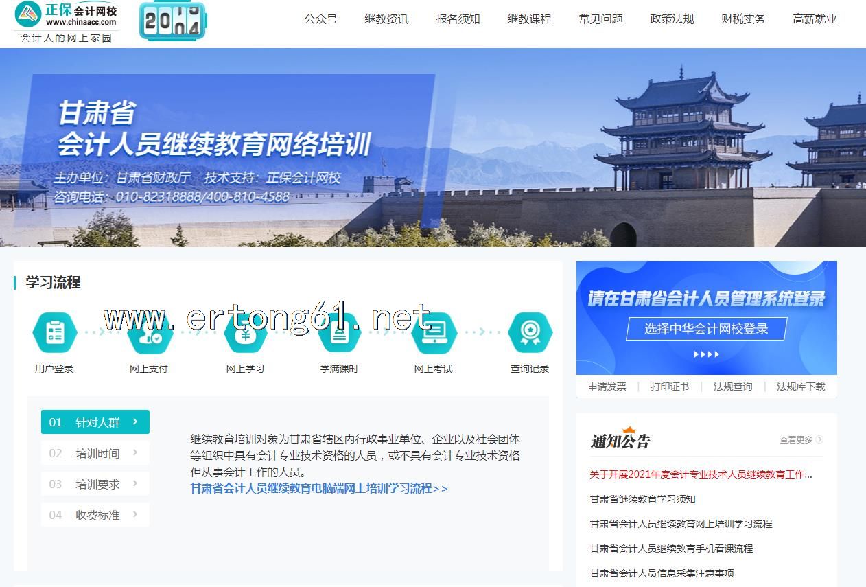 甘肃省会计人员继续教育网络培训 正保会计网校 学习联系在线客服