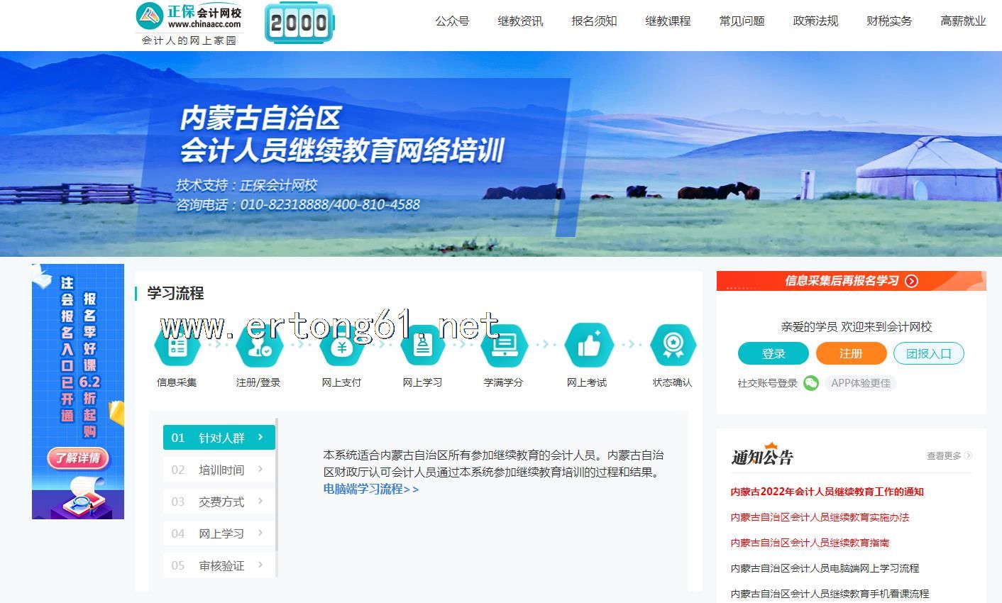 内蒙古自治区会计人员继续教育网络培训 正保会计网校 学习联系在线客服
