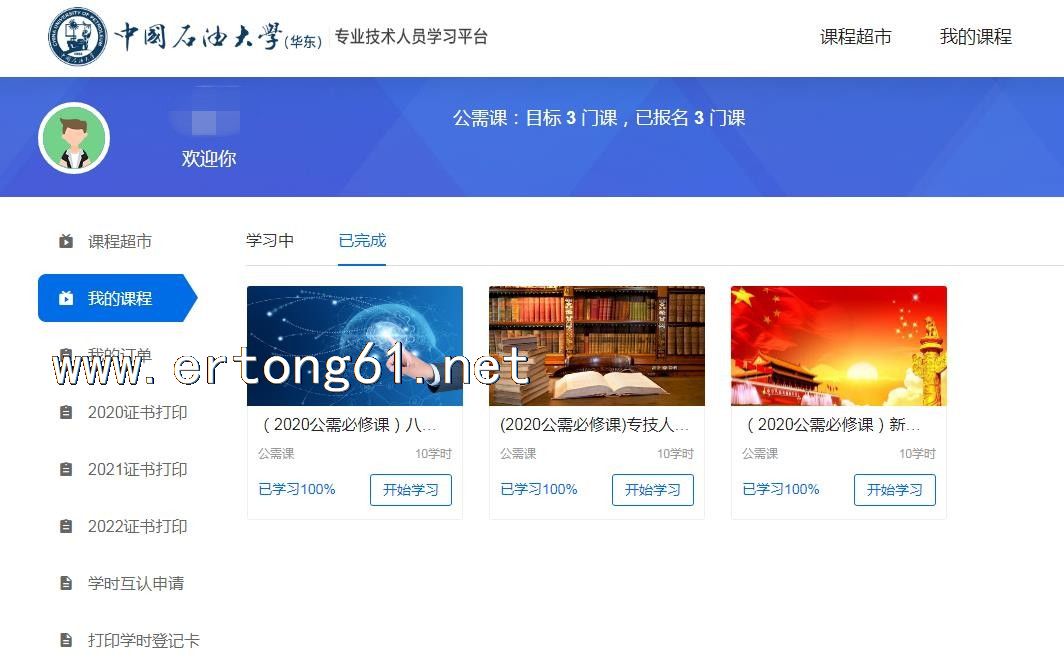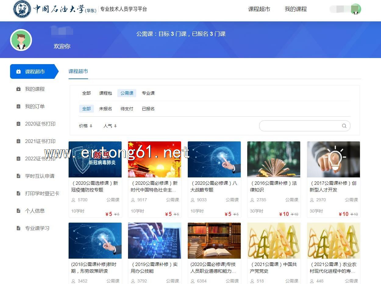 山东潍坊专业技术人员继续教育在线学习 中国石油大学(华东)可补学往年课程 2021年 2020年 公需课 专业课