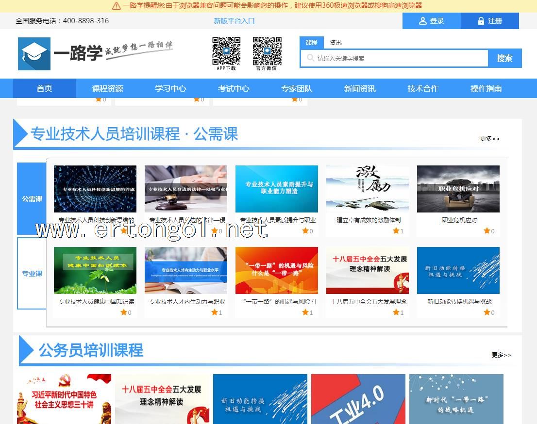 一路学继续教育 专业技术人员公需课专业课学习 公务员公需课