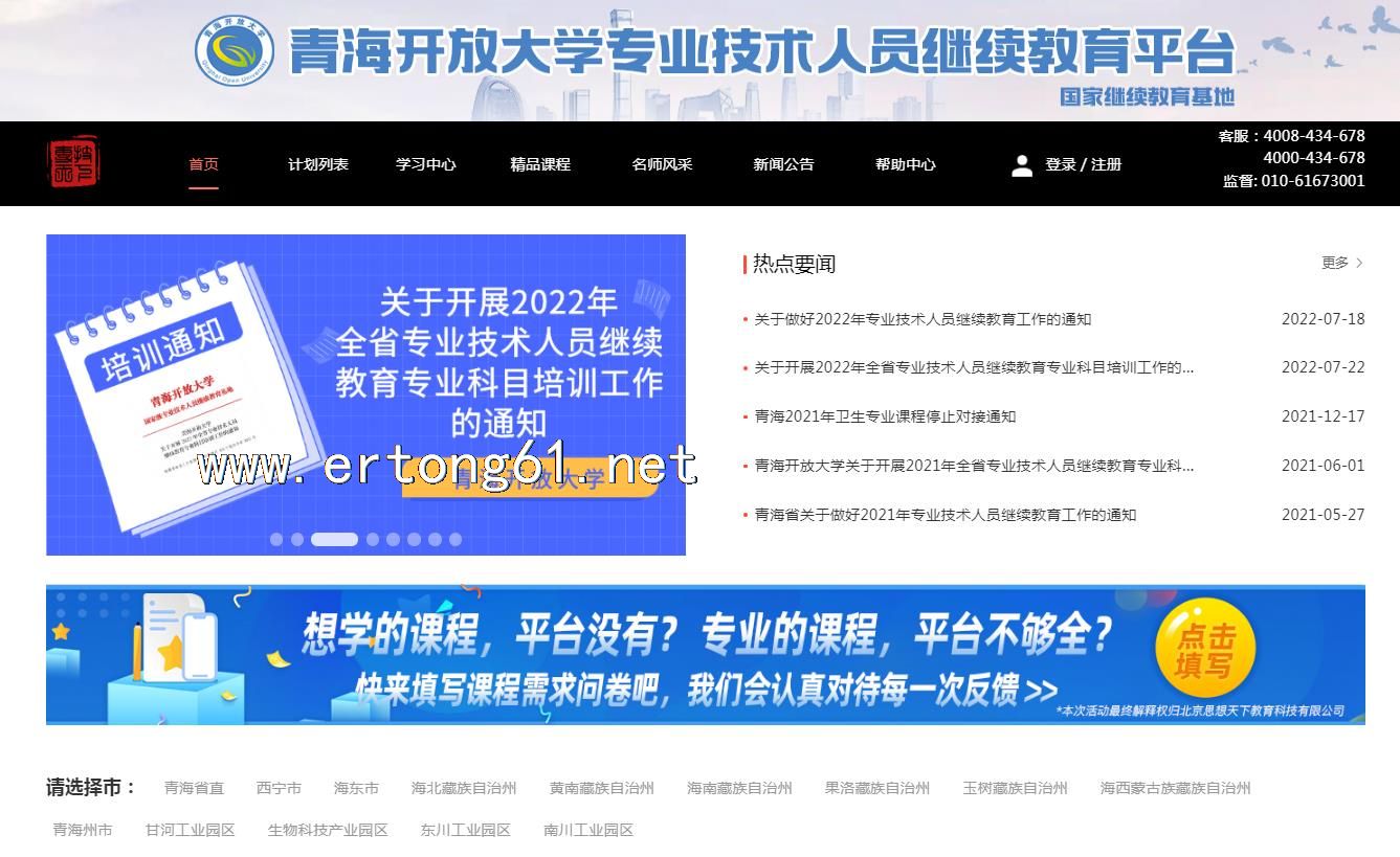 青海开放大学专业技术人员继续教育平台 专技天下网 专业课学习联系在线客服