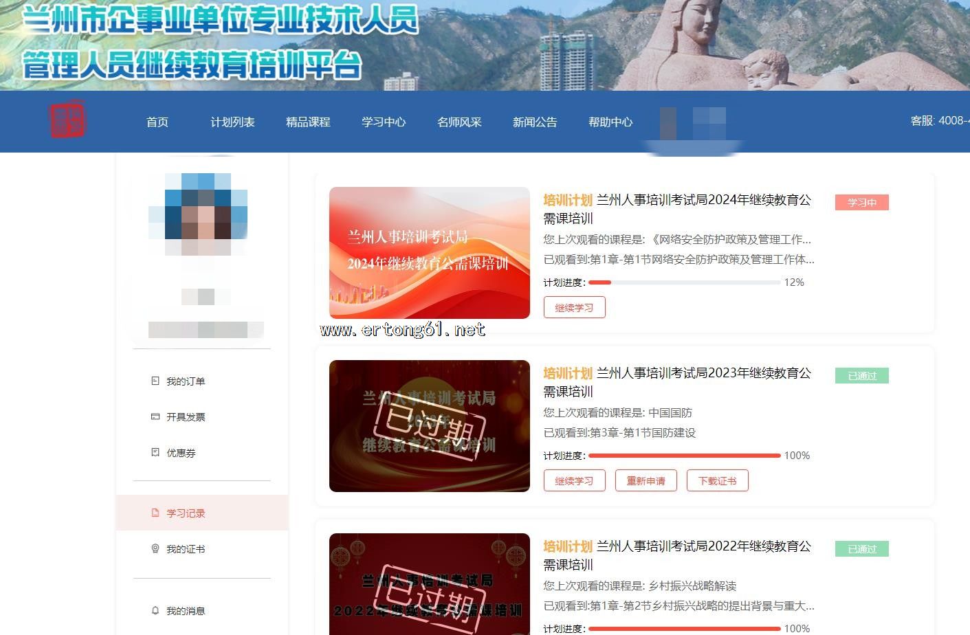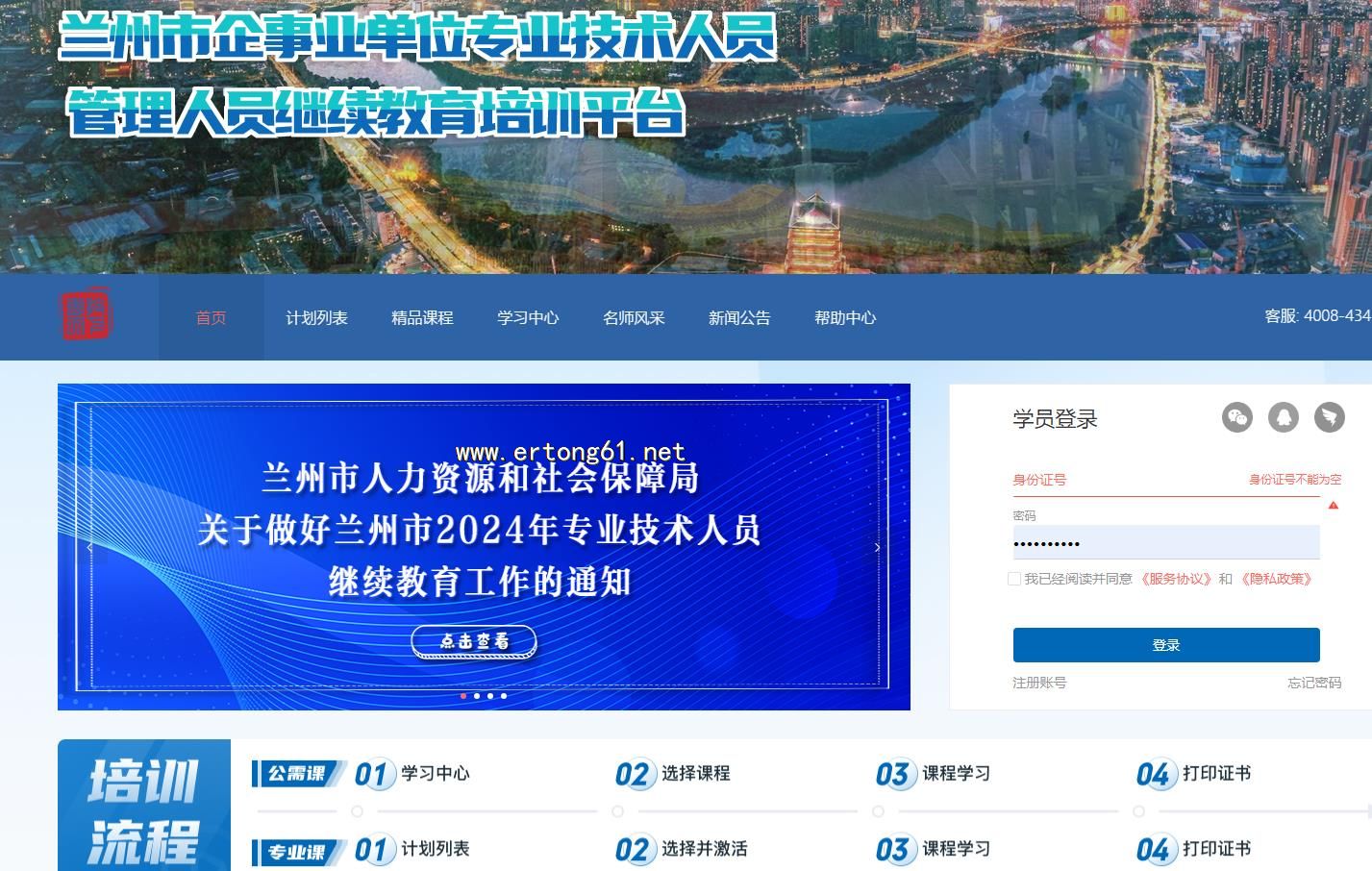 兰州市企事业单位管理人员 专业技术人员继续教育培训平台 兰州市人事培训考试局 公需课专业课学习联系在线客服