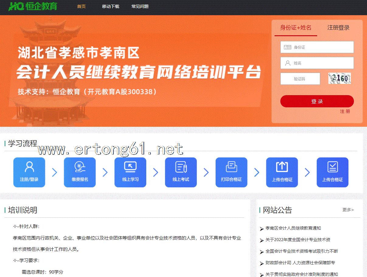湖北省孝感市孝南区会计人员继续教育网络培训平台 恒企教育 会计继续教育课程学习联系在线客服