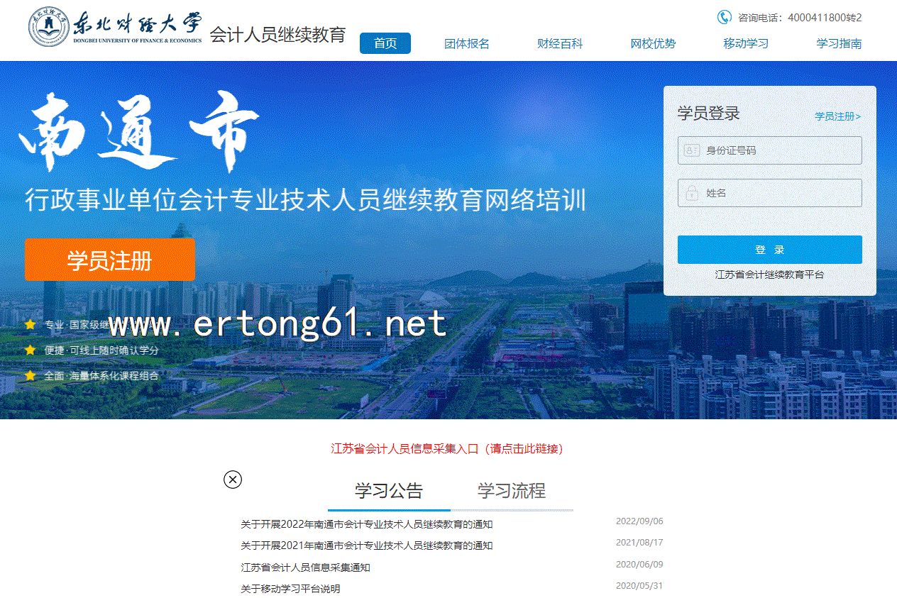 昆山市 南通市会计专业技术人员继续教育培训 公需课专业课学习联系在线客服 东北财经大学