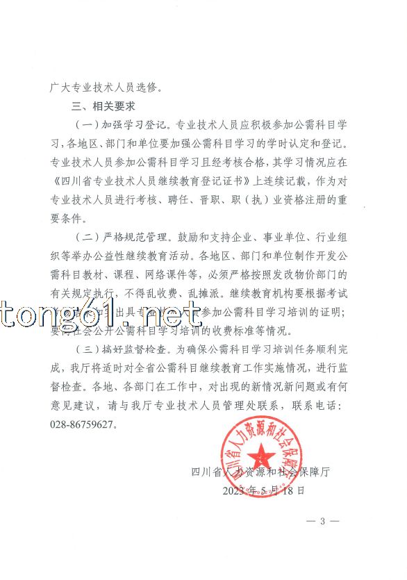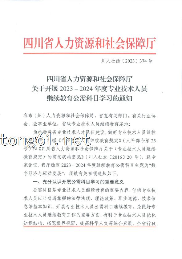 四川省人力资源和社会保障厅关于开展 2023 -2024 年度专业技术人员继续教育公需科目学习的通知