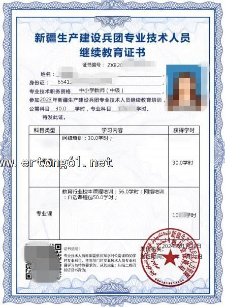 新疆生产建设兵团专业技术人员继续教育证书 扫码快速学习获取证书