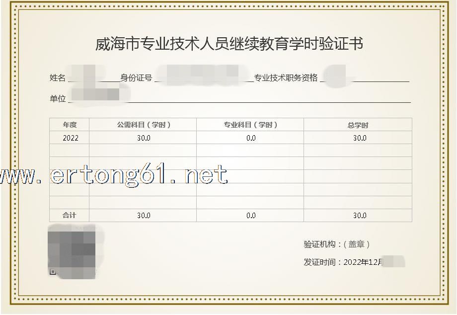 威海专业技术人员继续教育学时验证书 扫码快速学习获取证书