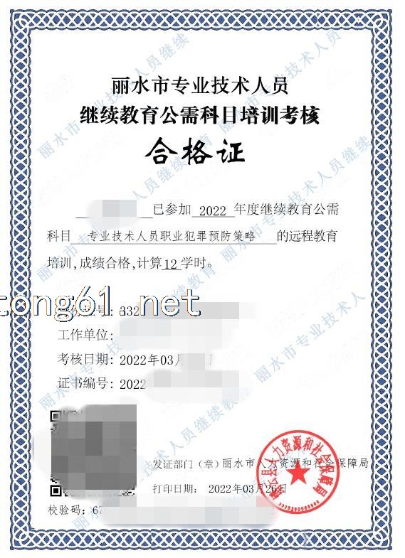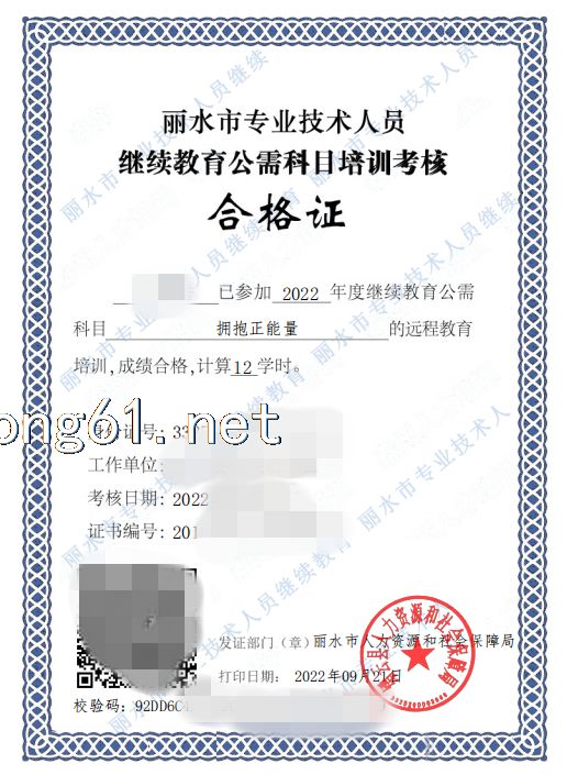 丽水市专技人员继续教育公需科目合格证 扫码快速学习获取证书