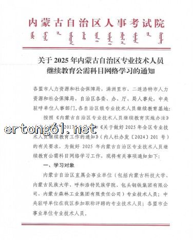 关于2025年内蒙古自治区专业技术人员继续教育公需科目网络学习的通知 二、学时和内容 2025年专业技术人员继续教育公需科目共30个学时,全部为必修课。学习内容围绕全面贯彻党的二十大和二十届三中全会精神, 贯彻落实国务院关于推动内蒙古高质量发展奋力书写中国式现代化新篇章的意见,深入学习总书记考察内蒙古重要讲话精神, 办好两件大事,以铸牢中华民族共同体意识为工作主线,全面加强数字技术、网络安全、科技创新、绿色发展、乡村振兴、发展新 质生产力等相关内容学习。学员在学习完所有课程后参加考试,考试合格后方可取得成绩,公需科目学习记录会自动上传人才信息 库,学员也可以打印成绩合格证书。 ---------------------------- 详细情况欢迎您咨询本站在线客服 ----------------------------------------------------------------------- |