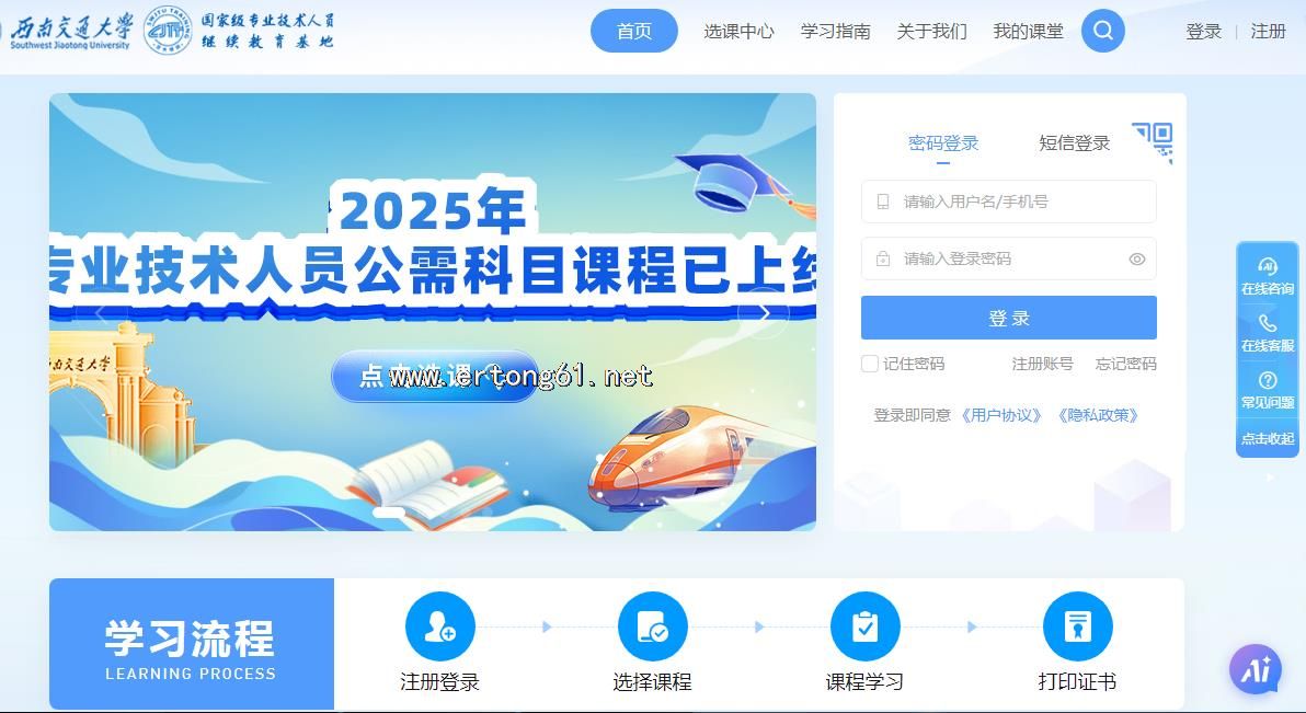 四川省专业技术人员继续教育西南交通大学公需课专业课学习联系在线客服