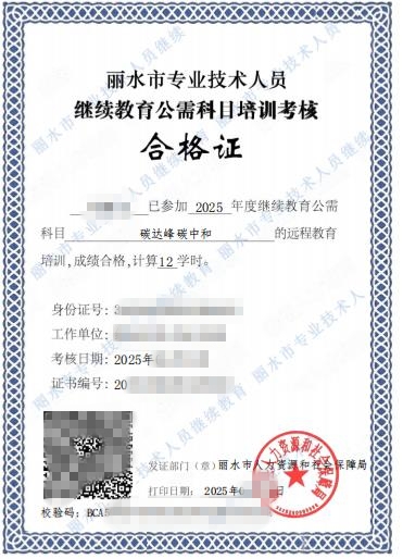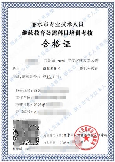 2025年丽水市专技人员继续教育公需科目培训考核合格证