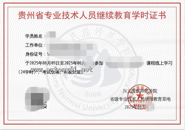 贵州兴义继续教育专业课学时证书