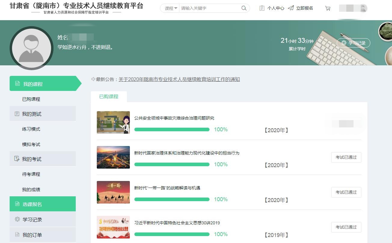 陇南市专业技术人员继续教育平台 学习联系微信zhu7204